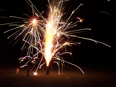 But that only lasted a couple of years and by the time he was 7 or so he was ready to join the other neighborhood boys in the fun rite of passage...non-stop firecrackers for a week or so. And we learned over the years that really, the bigger the boy (ie: his father), the bigger the noise. Many a year there were sparkler bomb marks in our back yard from that less-than-legal activity.